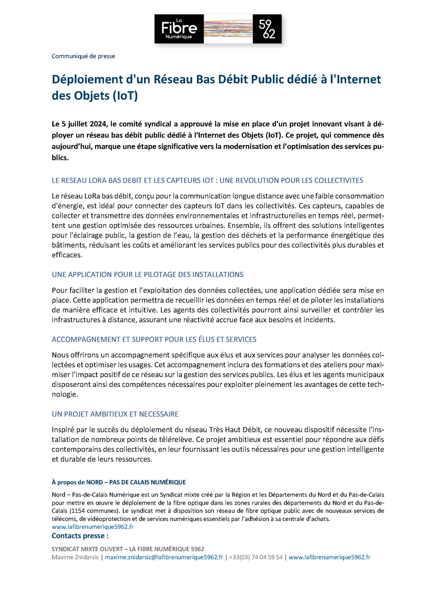 Le syndicat mixte pour répondre aux besoins identifiés des collectivités en tant que tiers de confiance dans les domaines des communications électroniques et des usages du numérique. Avec le déploiement d’un réseau public bas débit LoRa, indépendant, souverain et mutualisé pour l’ensemble des territoires et cas d’usages. Ce réseau longue portée permet aux objets connectés d’échanger des données. Peu gourmand en énergie et économique, il offre une excellente capacité de communication à travers les bâtiments, caves et sous-sols, tout en répondant aux problématiques de consommation énergétique des bâtiments, de préservation des ressources et de réduction des coûts.