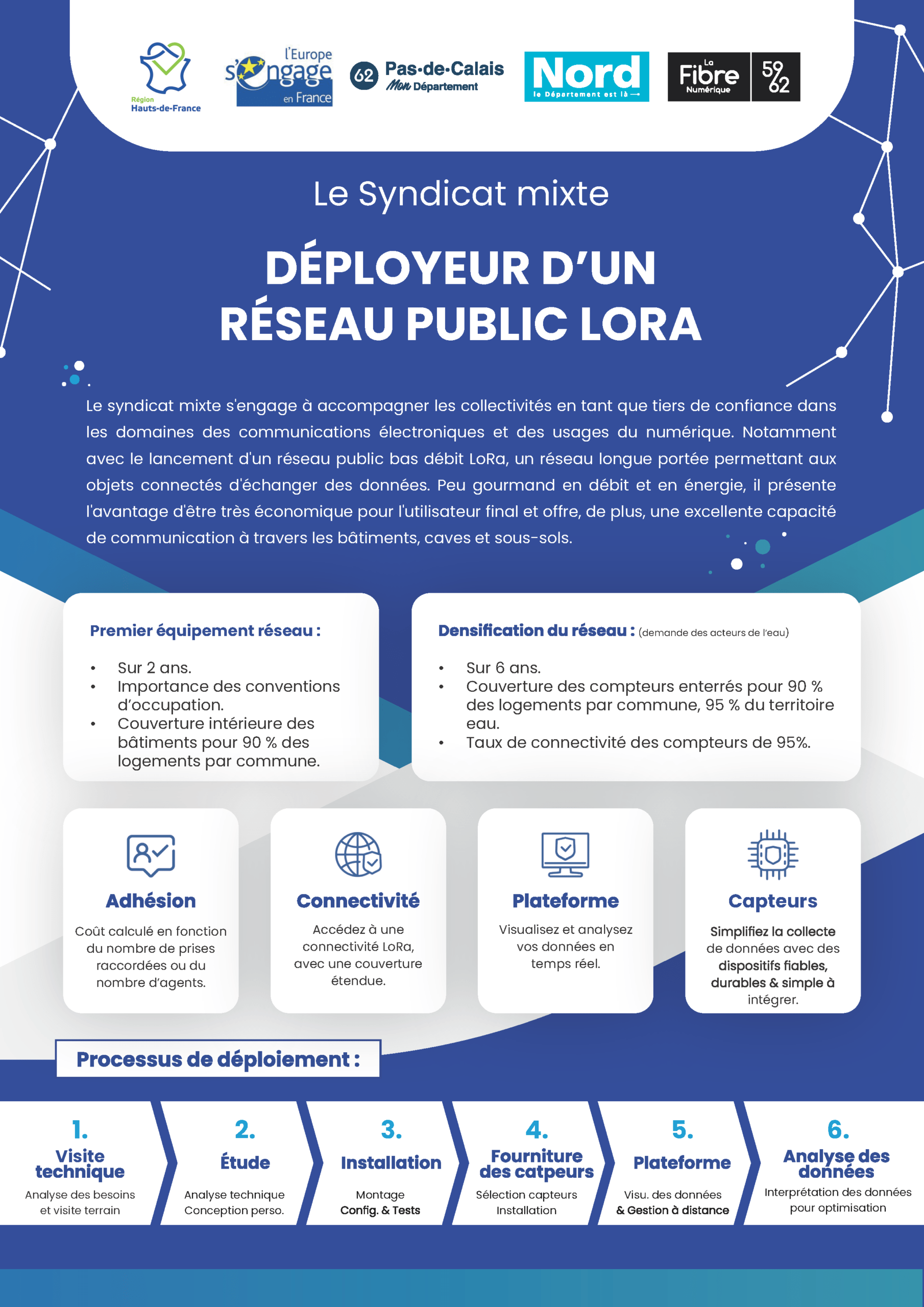 Le premier équipement réseau déployé constituera le socle de ce réseau bas débit public LoRa. Il consistera en l’installation de points de télérelève en hauteur couvrant l’ensemble du territoire du Nord-Pas-de-Calais, afin d’assurer une couverture de base efficace. Une fois ce socle opérationnel, le réseau sera progressivement densifié pour répondre aux besoins spécifiques des utilisateurs, tels que ceux des acteurs de l’eau avec les compteurs enterrés, notamment dans les zones nécessitant une couverture renforcée.